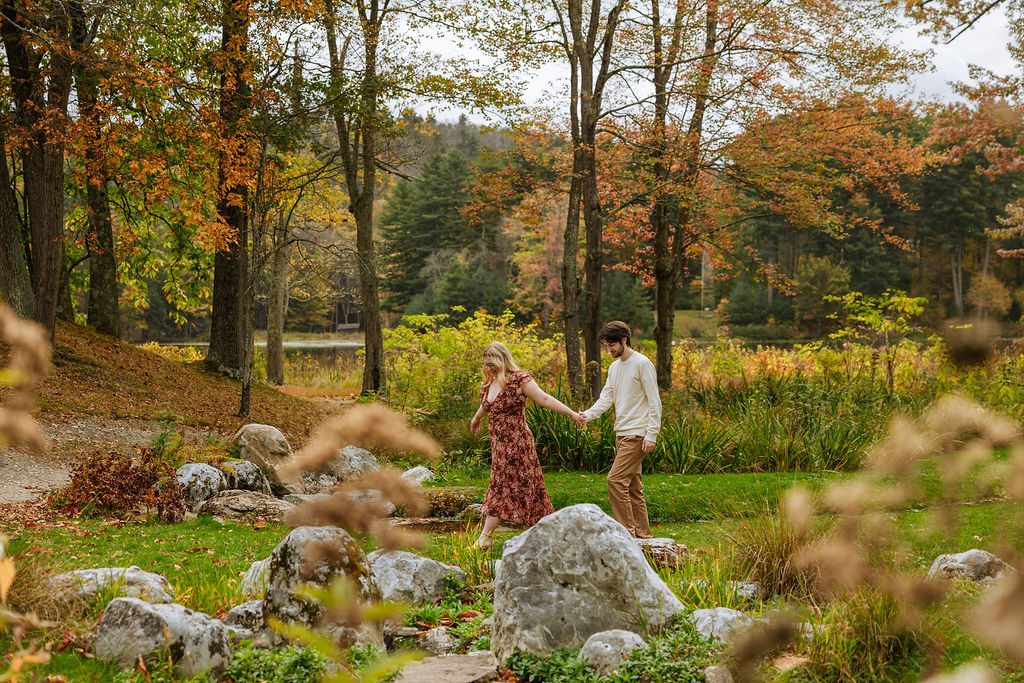 One of the most beautiful parts of photographing engagement sessions at Innisfree Gardens is how naturally the environment encourages couples to slow down and simply enjoy being together. Rather than rushing from one photo spot to another, the gardens invite you to walk, explore, and take in the scenery creating moments that feel genuine and relaxed.